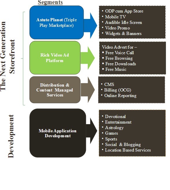 Astute is the leading player in mobile value added services (VAS) and has been innovating the Value-added Services industry since 2005. Ever since its inception, the company has been extensively engaged in the development of movie portals and Indian-centric devotional apps, local games and exclusive catalogue of regional apps irrespective of device support. The company had extended its small movie portals to extensive On Device Portal (ODP) as Triple Play Storefront. It’s one of the unique kind of ODP which is focused on Triple Play strategies i.e. Targeting Voice (Voice Network Channel), Access (Data Channel) and Media (memory space available with the device).
